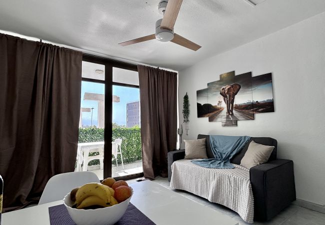El el salón hay un sofá nuevo y muy comodo y de aqui hay acceso directo alla amplia terraza donde podras disfrutar del Sol y de la ligera brisa que hacen del clima de Tenerife uno de los mejores del mundo. En la terraza tienes dos tumbonas para descansar o tomar el sol, una zona con mesa y sillas para comer al aire libre y otra zona de descanso con un sofá donde poderse relajar, leer un buen libro y simplemente "quedarte".Nos gusta pensar que aunque estemos en Playa de Las Américas, en el centro neurálgico, es agradable poder volver a casa y tener espacio para relajarse y disfrutar del clima especial de la isla incluso por la noche.En el apartamento hay wifi, encontrarás colchones para hamacas, desde la cocina totalmente equipada tienes acceso a un área externa con área de lavado, un fregadero y una nevera adicional,