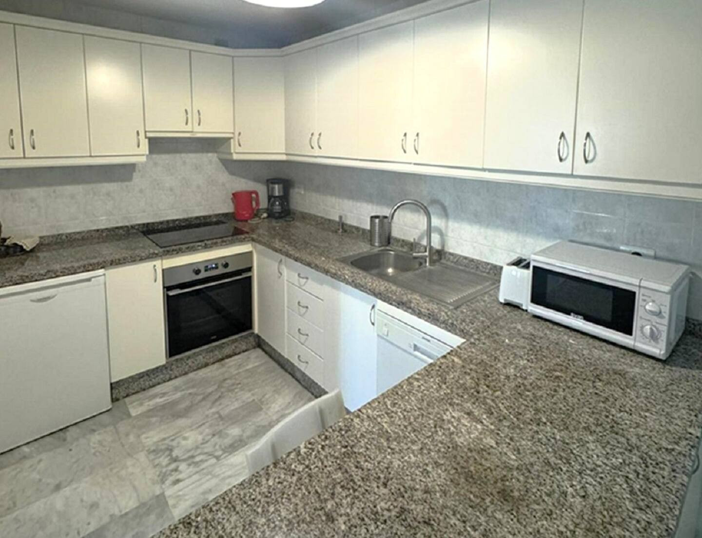 Il complesso è family-friendly e offre una splendida piscina climatizzata, un comodo pool bar perfetto per uno snack, un drink rinfrescante o semplicemente per rilassarsi al sole sui lettini. A pochi passi troverai ristoranti, supermercati e negozi: qui tutto è a portata di mano.